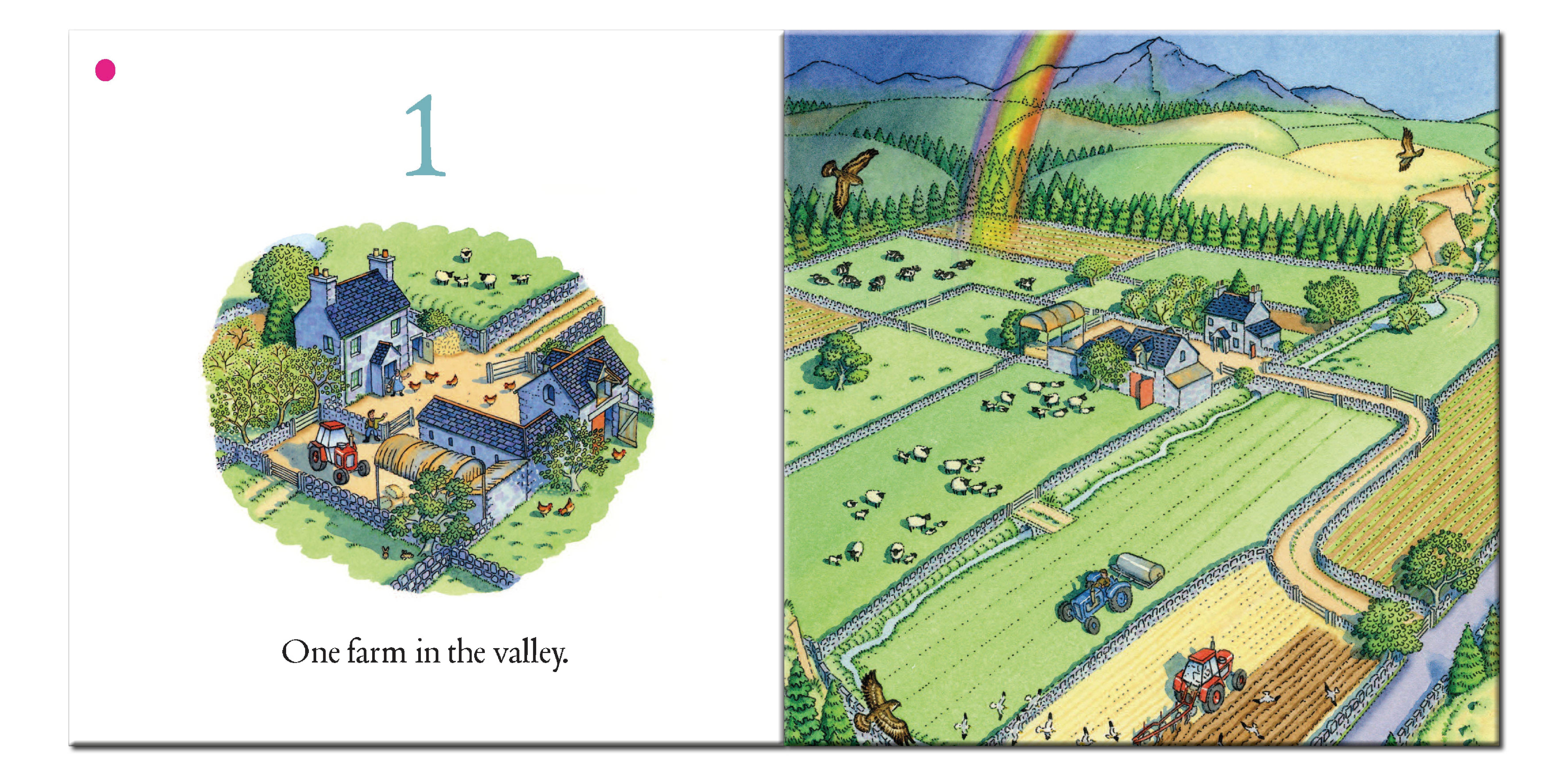 Young readers are invited to look for different groups of animals – including cats, dogs, ponies, geese, rabbits, ducks, hens, cows and sheep – in the illustrations which are packed with Benedict Blathwayt’s trademark detail.