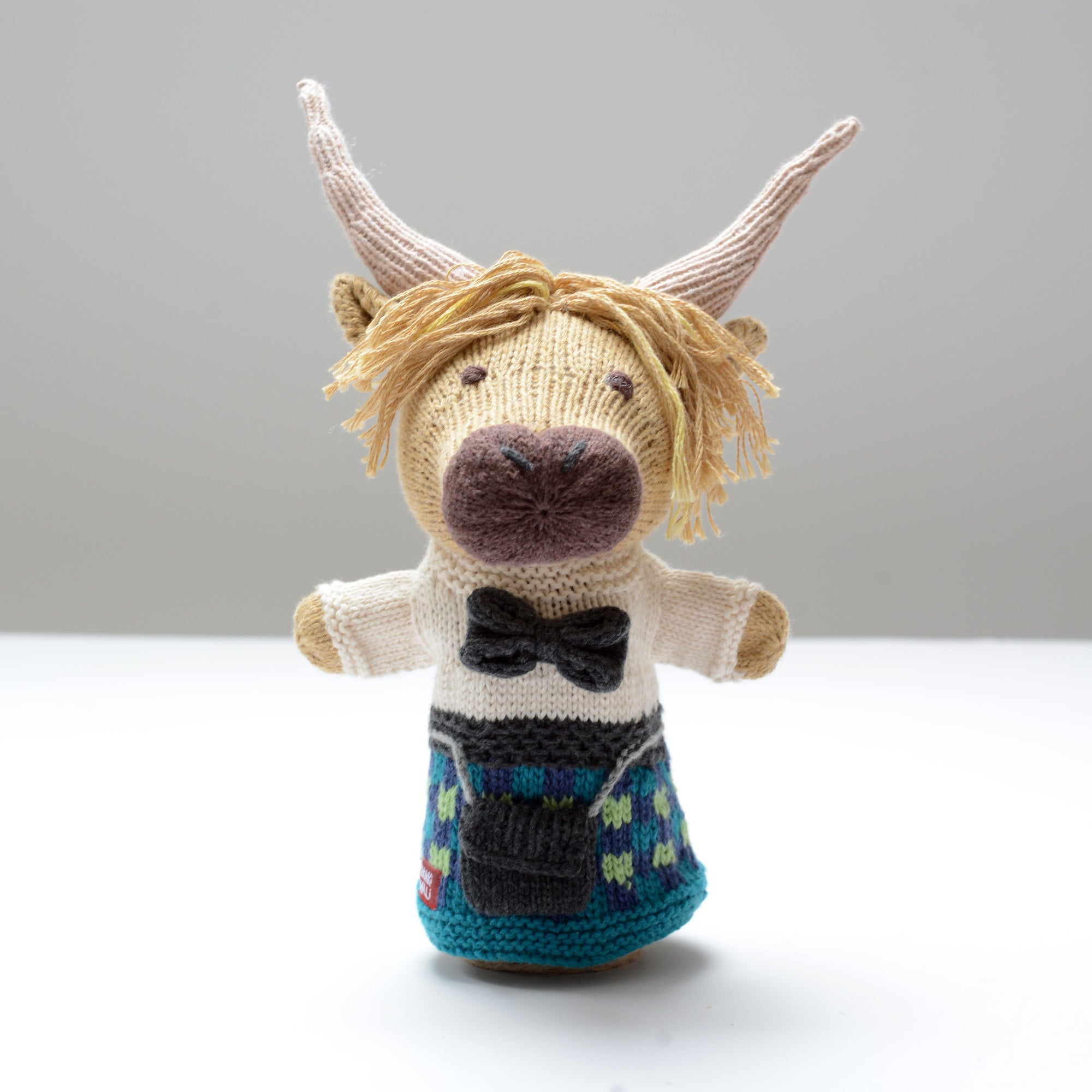 ChunkiChilli - Highlander cow hand puppet in blue kilt