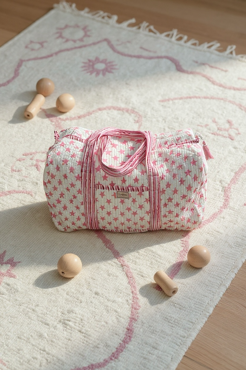TWIZZELL - INDIAN BLOCK PRINT WEEKEND BAG - PINK STAR