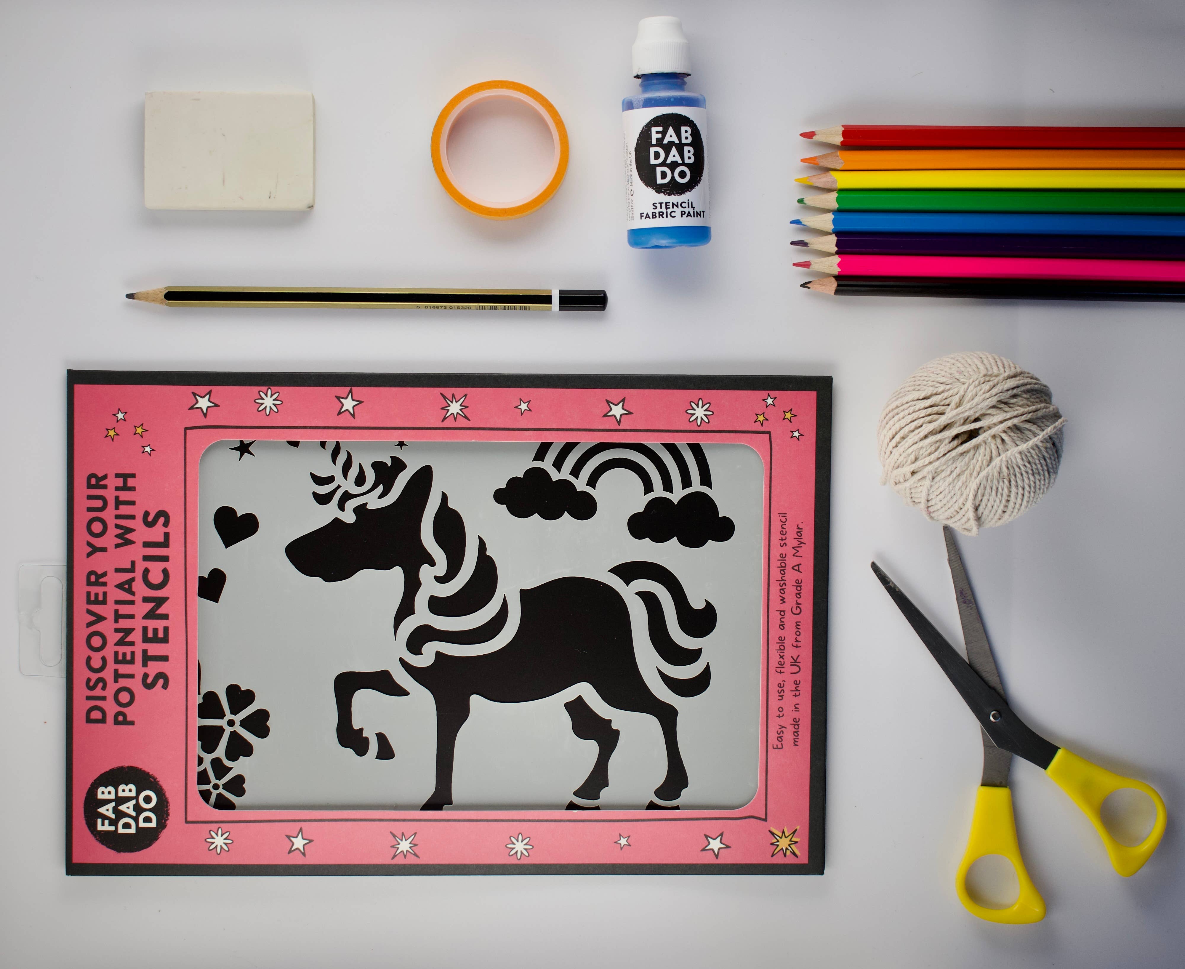 Fab Dab Do - Unicorn Rainbow Stencil for Arts and Crafts Kids 5yrs+: Pink