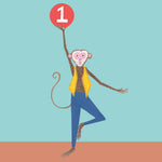 Hutch Cassidy - Age 1 'Monkey' Children's Birthday Greetings Card: Nested/Naked