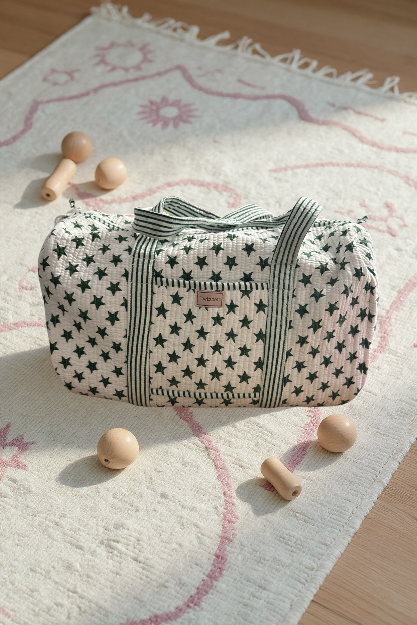 TWIZZELL - INDIAN BLOCK PRINT WEEKEND BAG - GREEN STAR