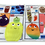 6 pages of bright fun illustrations and simple text alphabet of healthy fruit and vegetables. UKCA/CE tested and machine washable.