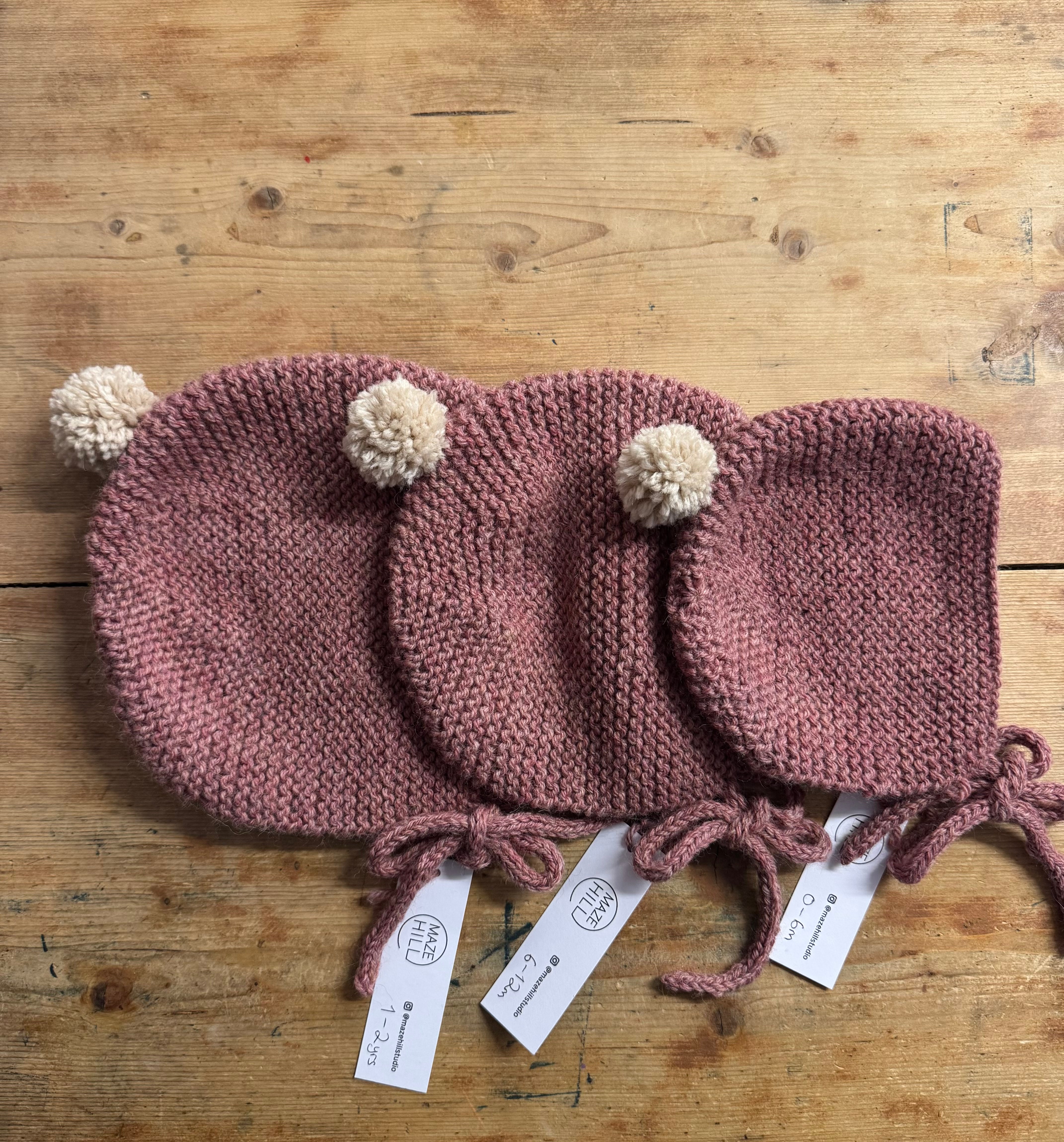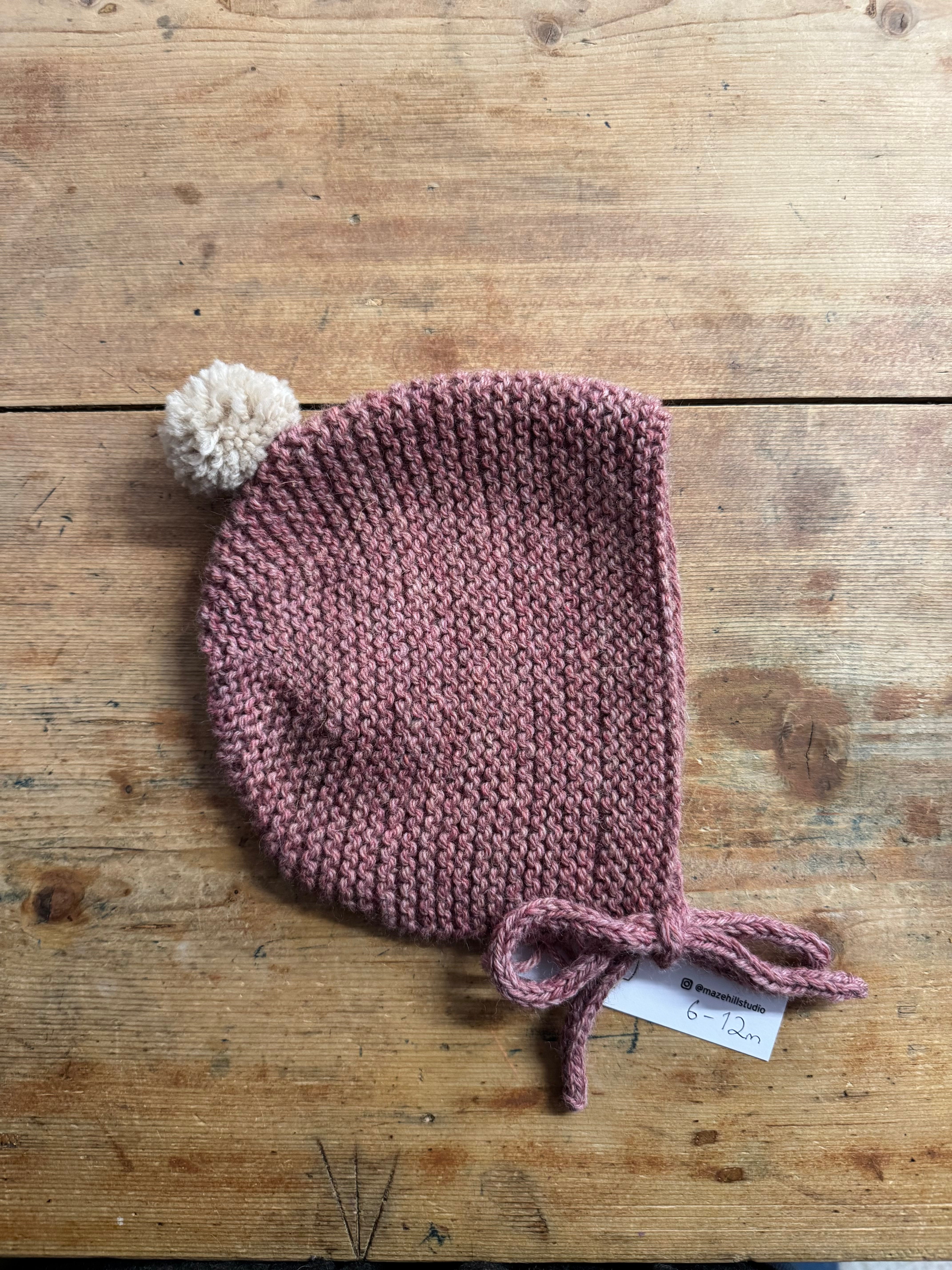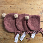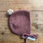 Maze Hill Studio - Knitted Baby Bonnet - Pink with Beige bobble